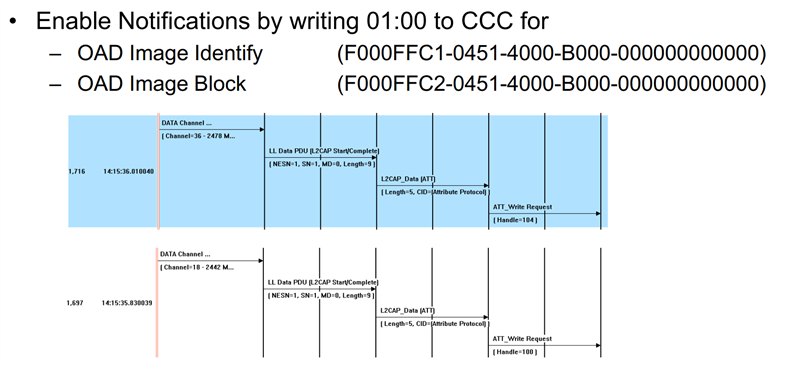 從app來講,開始OAD的第一步就是先使能上面兩個特征值的notification功能。
